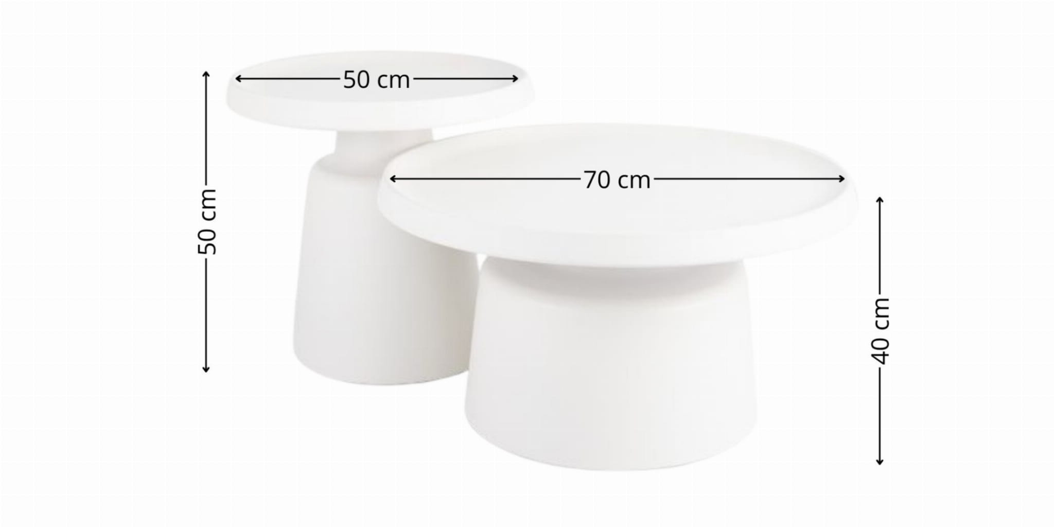 - Średnica większego stolika: 70 cm