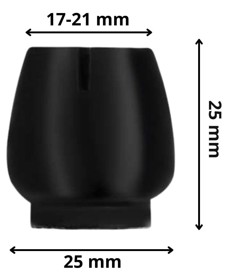 - Uniwersalne dopasowanie – pasuje na okrągłe nogi krzeseł o średnicy od 17 do 21 mm