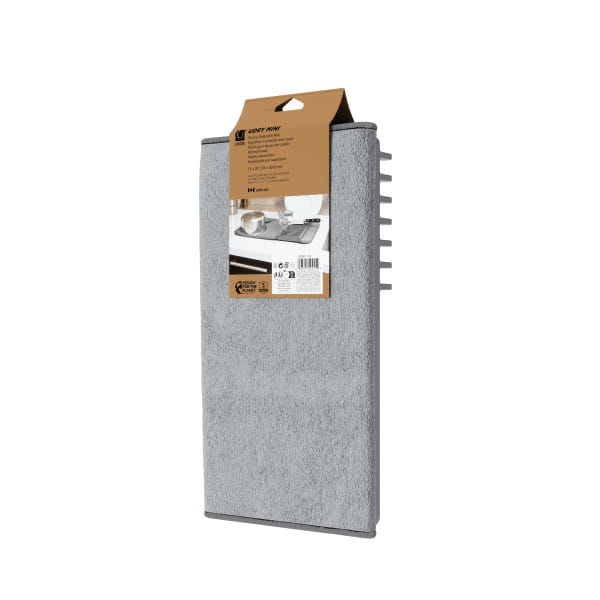 Poznaj UDRY MINI – praktyczną suszarkę do naczyń 2w1: chłonną matę do suszenia i lekki moduł ociekowy z tworzywa. Kompaktowy format 33×51 cm pozwala wygodnie osuszyć talerze, szklanki i sztućce, a po skończonym zmywaniu całość szybko zwiniesz i schowasz do szuflady. Elegancki szary odcień porządkuje wizualnie blat i pasuje do większości kuchennych aranżacji.