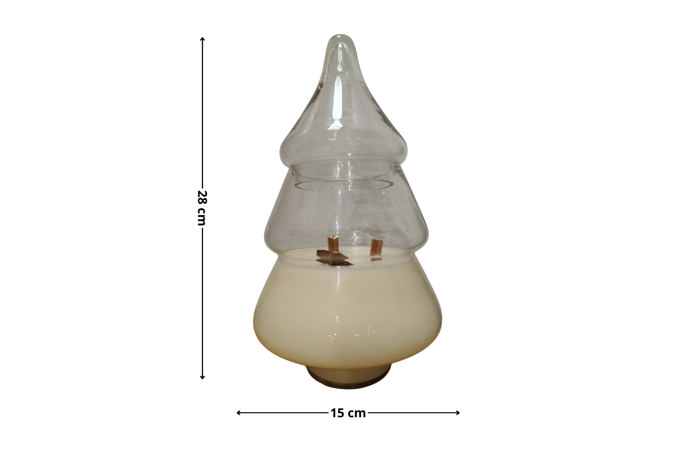 Wyjątkowa, dekoracyjna forma – duże szklane naczynie w kształcie choinki – sprawia, że świeca staje się spektakularnym elementem wystroju. Zapakowana w bawełniany woreczek, doskonale nadaje się na prezent świąteczny lub elegancką ozdobę stołu, komody czy parapetu.