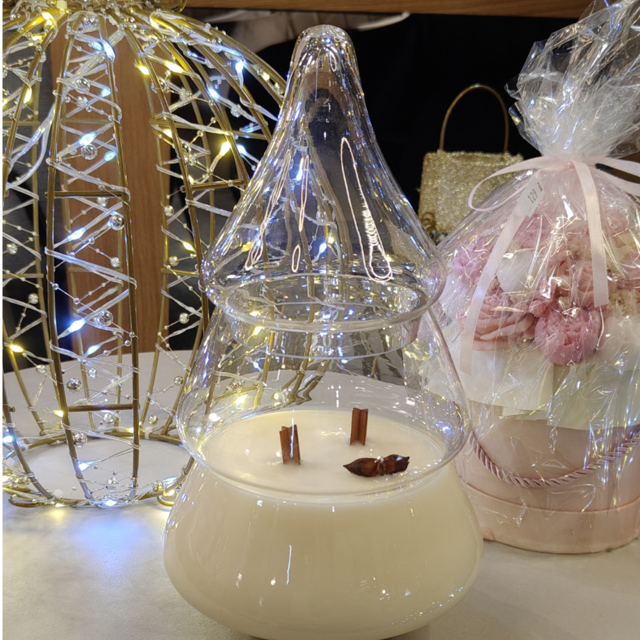 - Materiał: wosk sojowy, szkło dekoracyjne