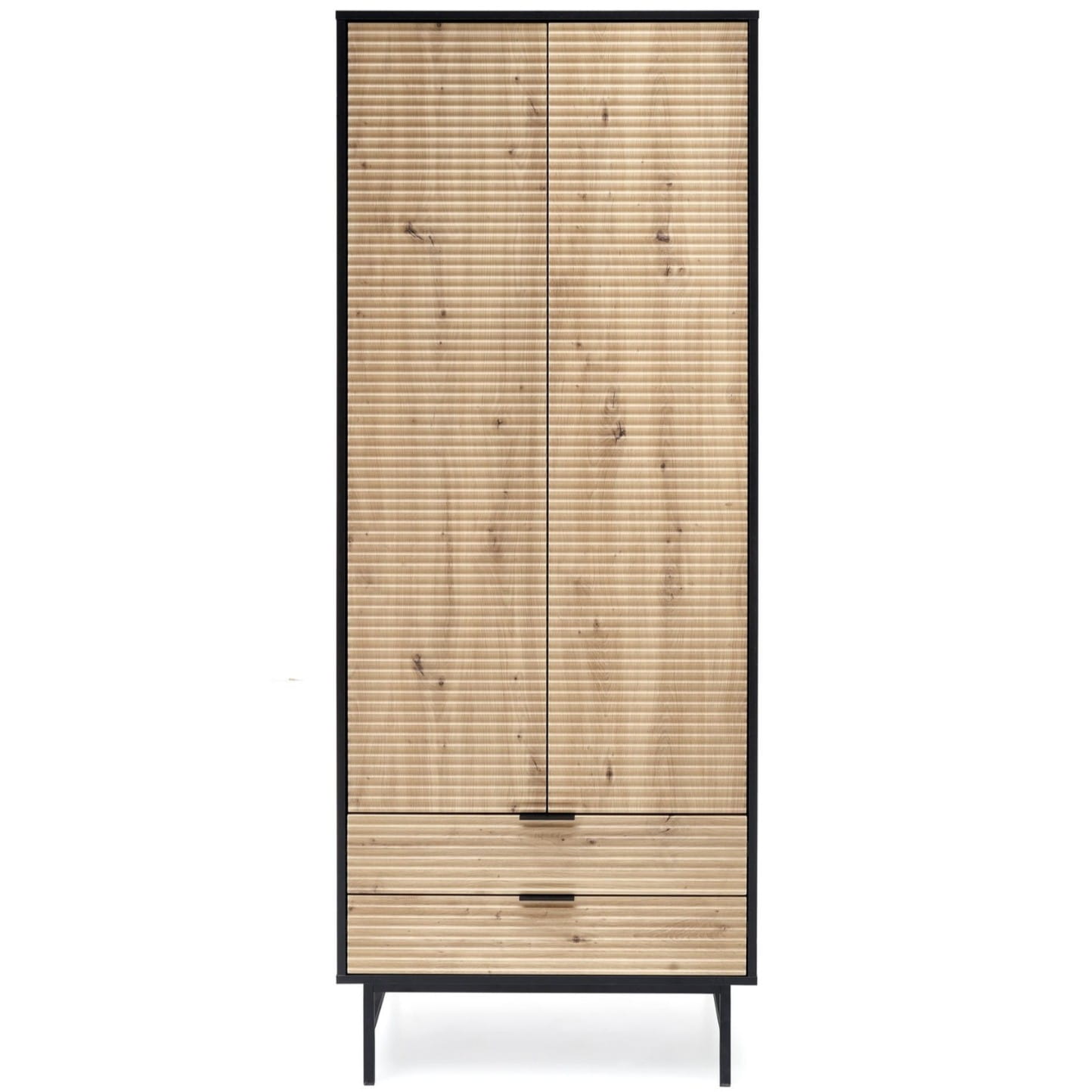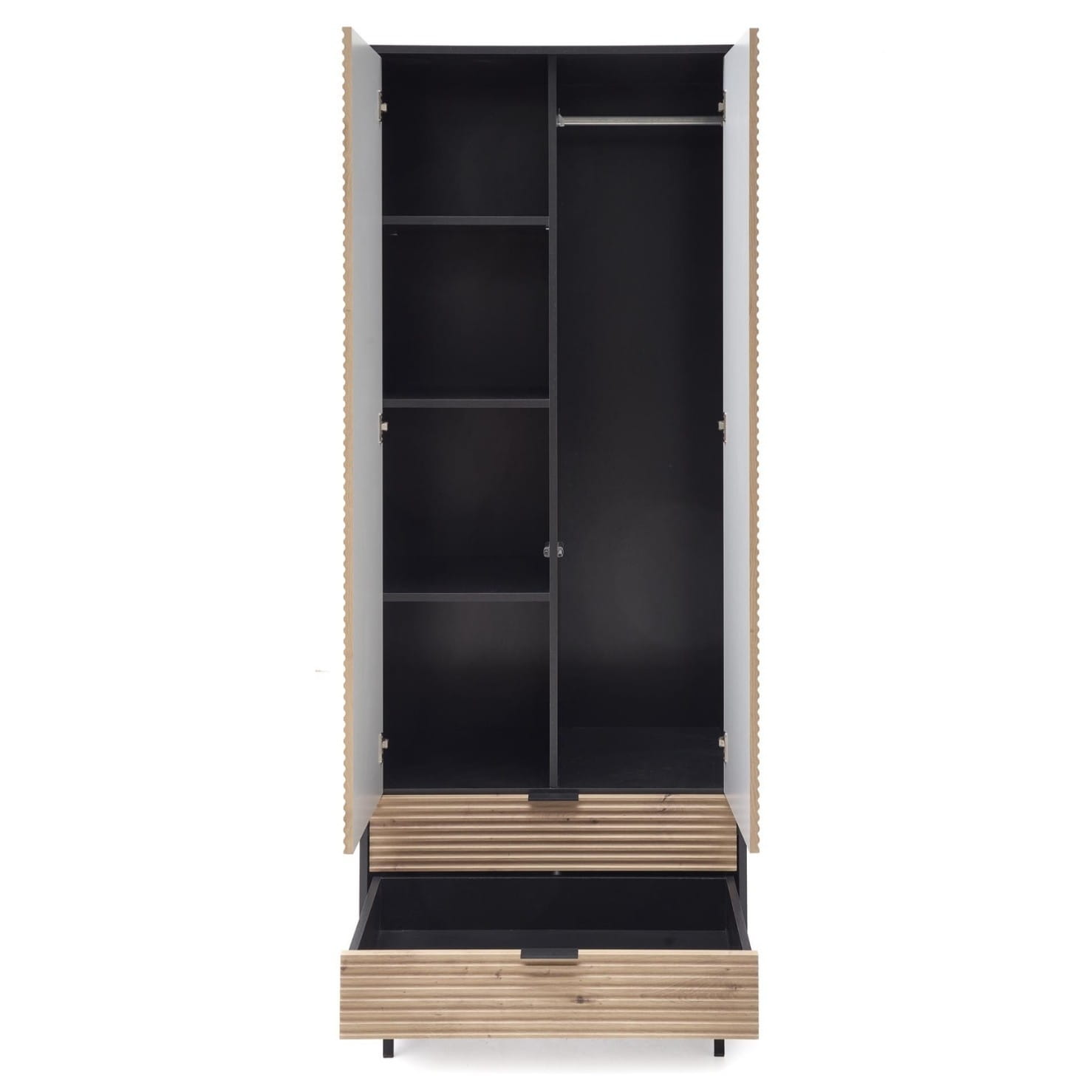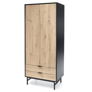 - Dwudrzwiowa szafa z szufladami – dodatkowe szuflady na dole idealnie sprawdzą się na bieliznę, akcesoria lub drobniejsze elementy garderoby