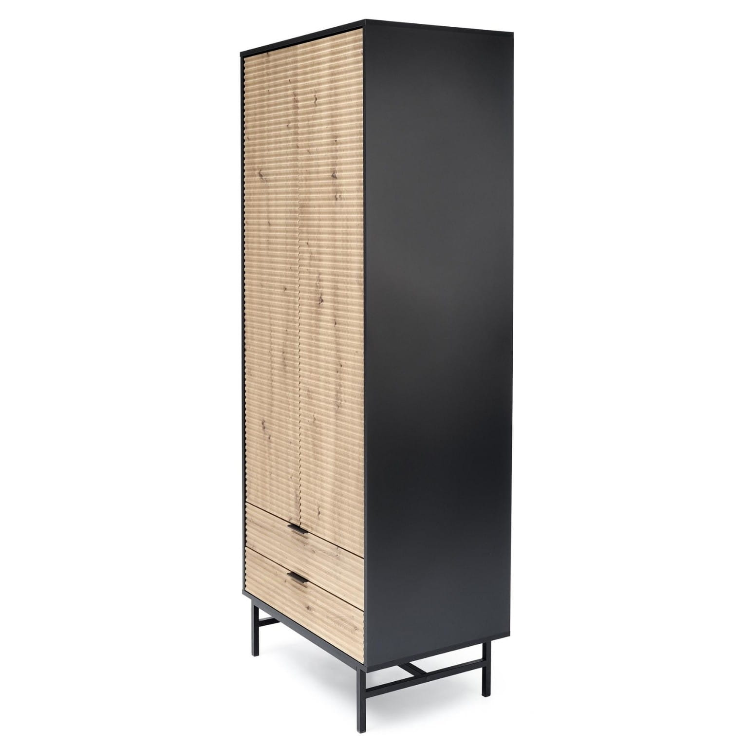 Szafa MURANO S-1 dąb artisan to połączenie nowoczesnego loftowego designu z wysoką funkcjonalnością na co dzień. Ciepły dekor dąb artisan zestawiony z metalową, czarną ramą tworzy efekt stylowej, industrialnej szafy na ubrania, która świetnie sprawdzi się zarówno w sypialni, jak i przedpokoju czy garderobie. Pojemne wnętrze z półkami, drążkiem i szufladami pozwoli wygodnie przechować ubrania, akcesoria oraz tekstylia, pomagając utrzymać porządek w domu.