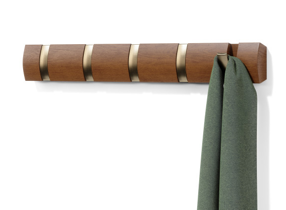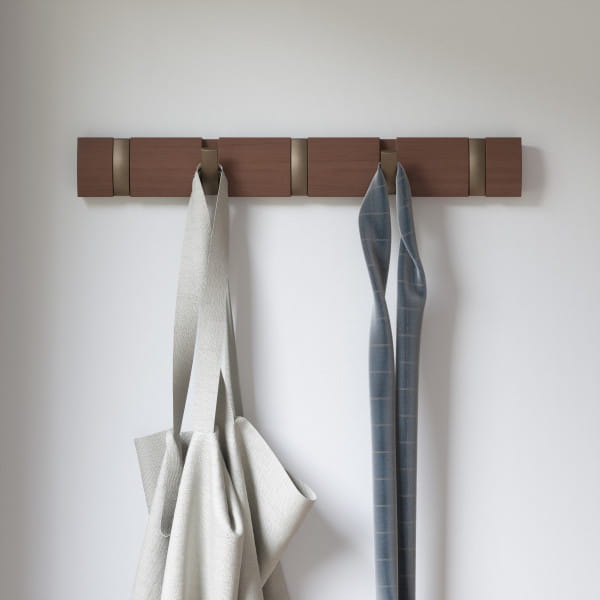 Wieszak ścienny z 5 haczykami, wieszak orzech złoty, elegancki wieszak do przedpokoju, nowoczesny wieszak UMBRA – to wszystko znajdziesz w jednym, dopracowanym produkcie.