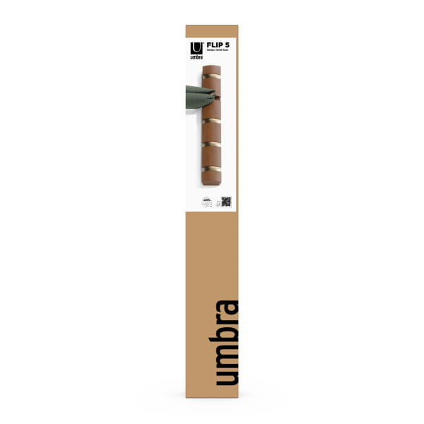 Wieszak UMBRA FLIP 5 w kolorze jasny orzech ze składanymi haczykami w odcieniu złotego metalu to połączenie elegancji i funkcjonalności w jednej, kompaktowej formie. Dzięki pięciu sprytnie ukrytym haczykom możesz w każdej chwili uporządkować swoją przestrzeń bez kompromisów estetycznych. Ten wieszak ścienny z drewna sprawdzi się w każdym wnętrzu, gdzie liczy się styl i wygoda.