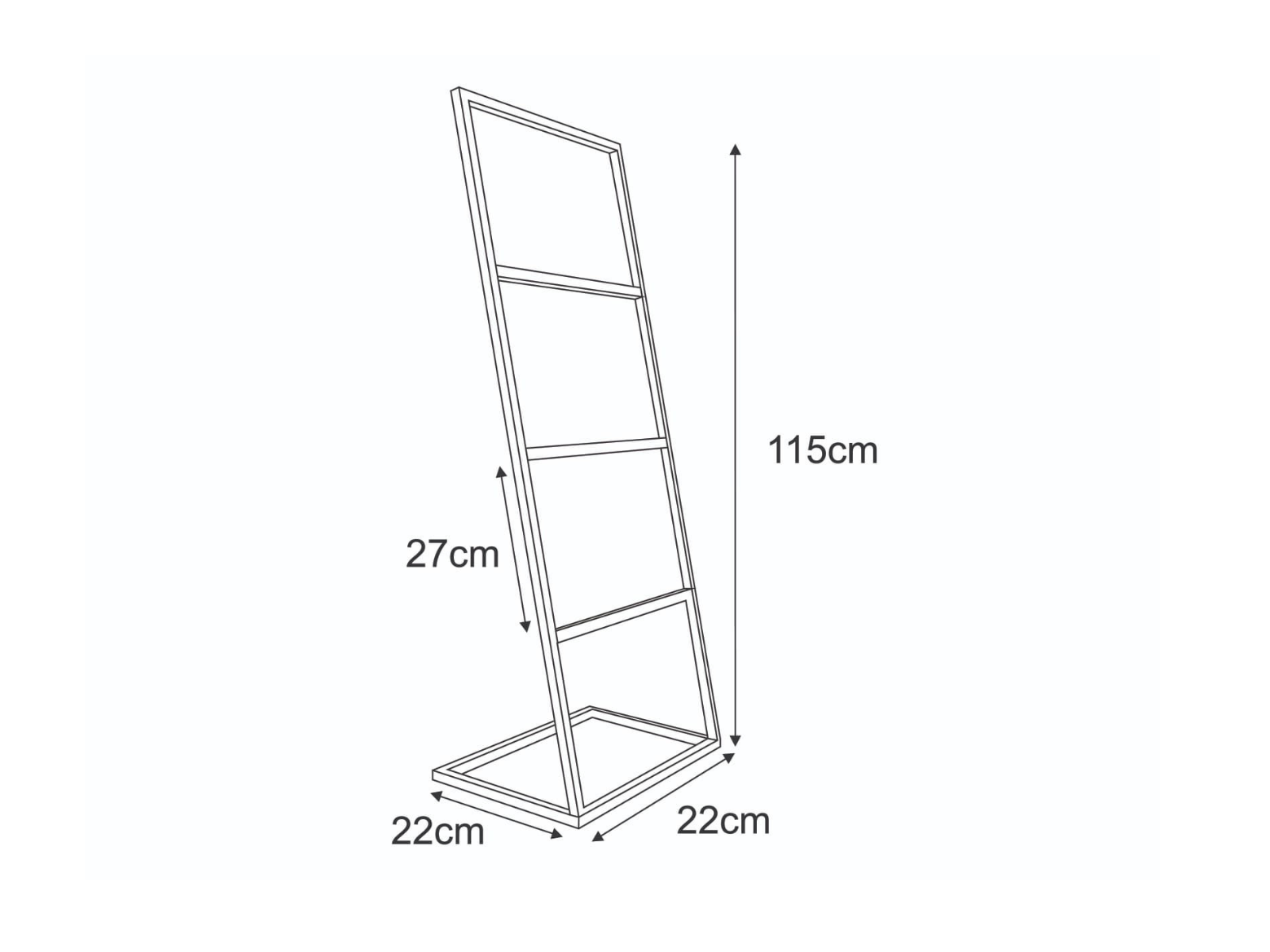 Solidna, metalowa konstrukcja zapewnia trwałość i odporność na wilgoć. Wymiary 115 × 50 × 30 cm pozwalają umieścić wieszak nawet w niewielkich pomieszczeniach, a jego smukła linia optycznie nie obciąża wnętrza. Dzięki przemyślanej konstrukcji, zachowujesz porządek i dodajesz przestrzeni charakteru.