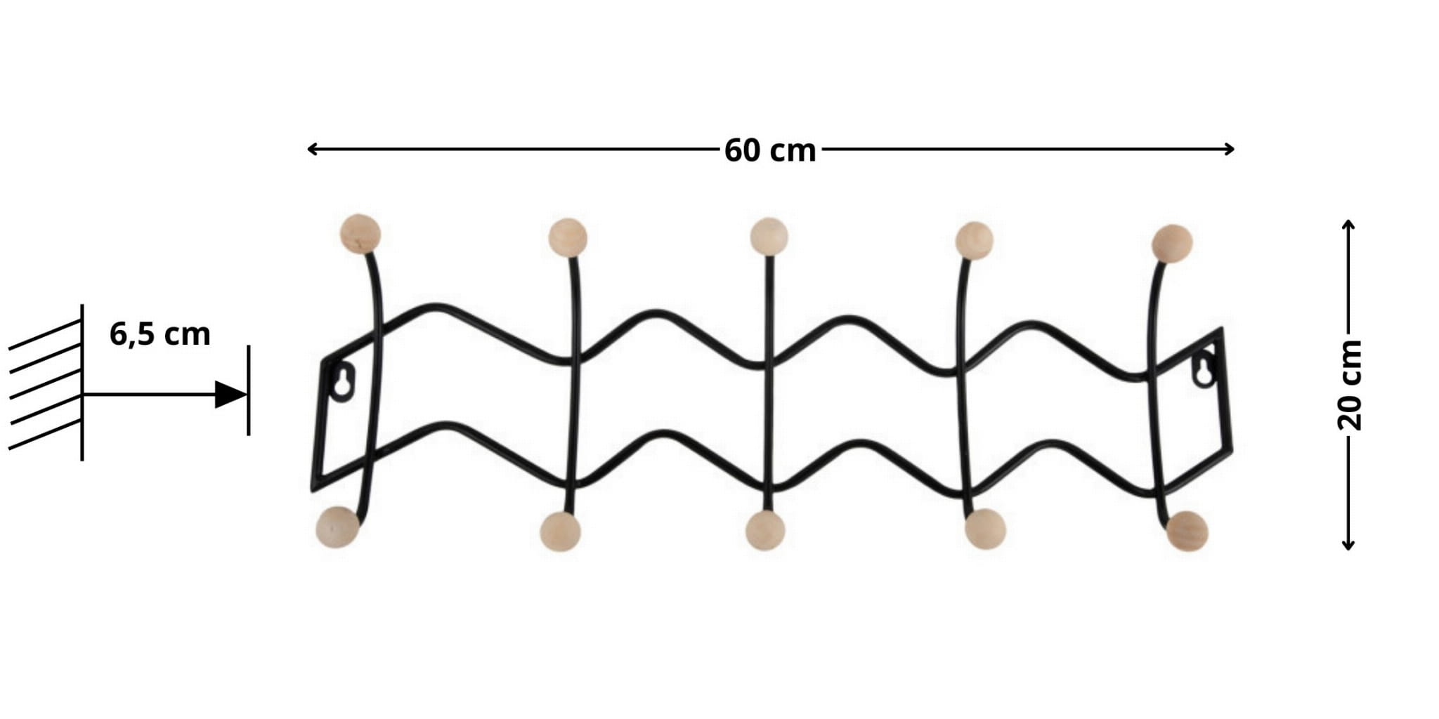 Wieszak na ścianę ZIG ZAG czarny