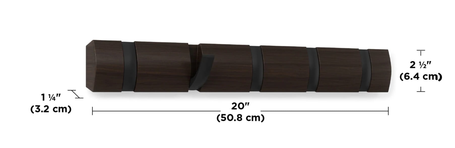 Wieszak ścienny FLIP 5 brązowy, czarny