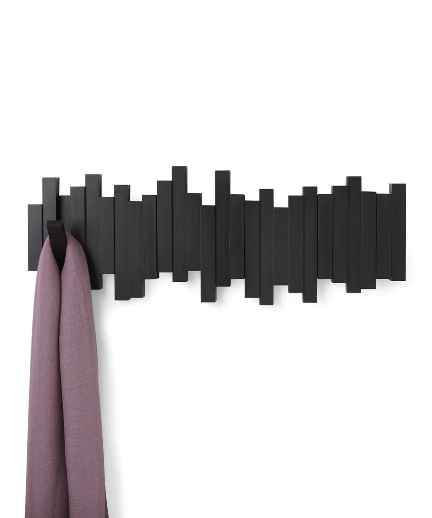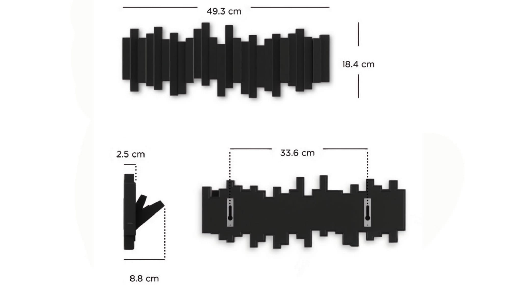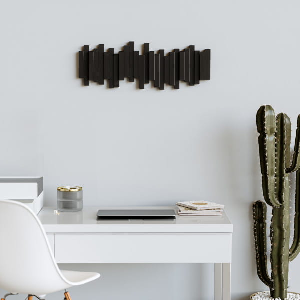 Wieszak STICKS czarny to funkcjonalny element dekoracyjny, który w inteligentny sposób pomaga utrzymać porządek w domu. Dzięki składanym haczykom jest praktyczny, ale gdy nie jest używany – wygląda jak designerska dekoracja ścienna.