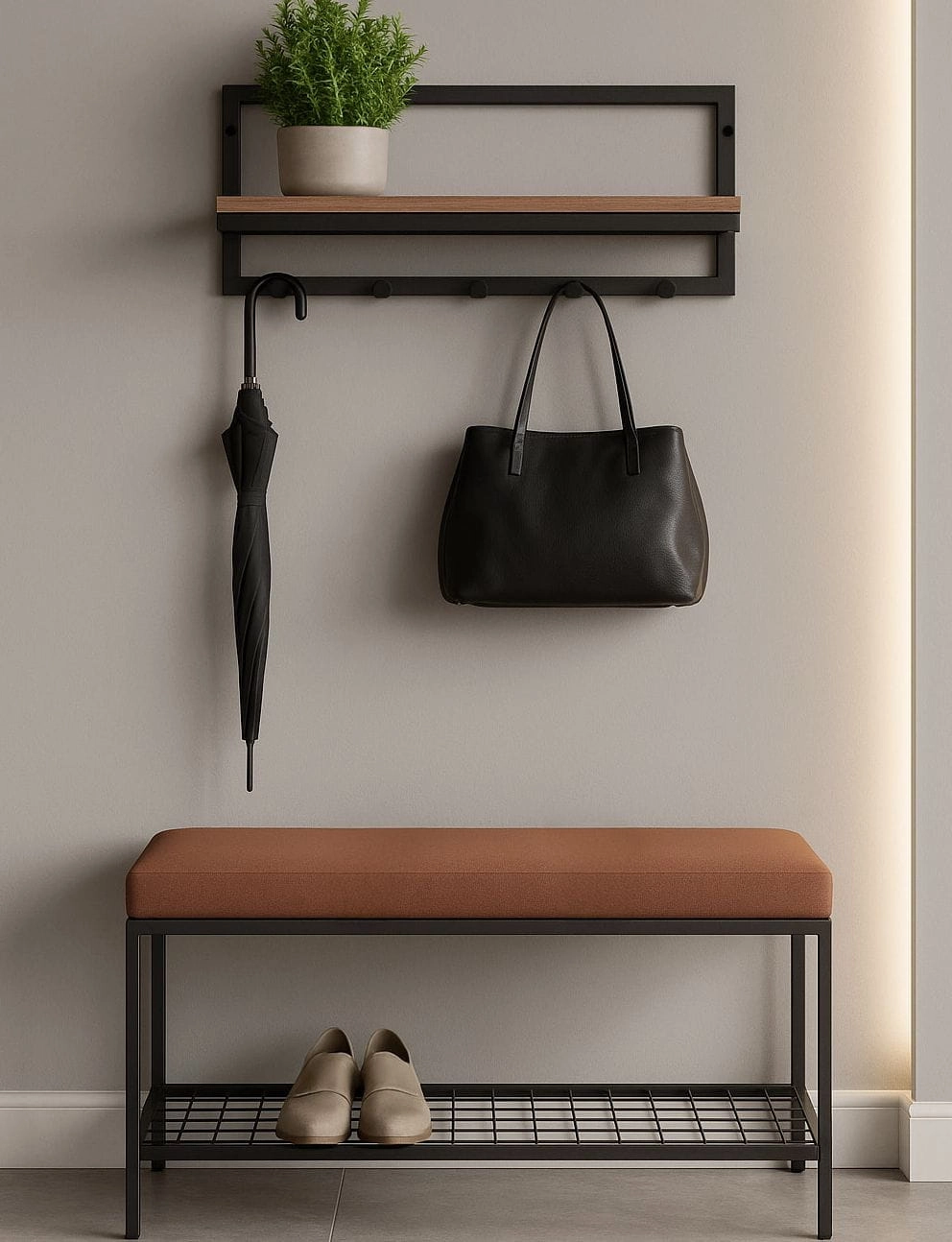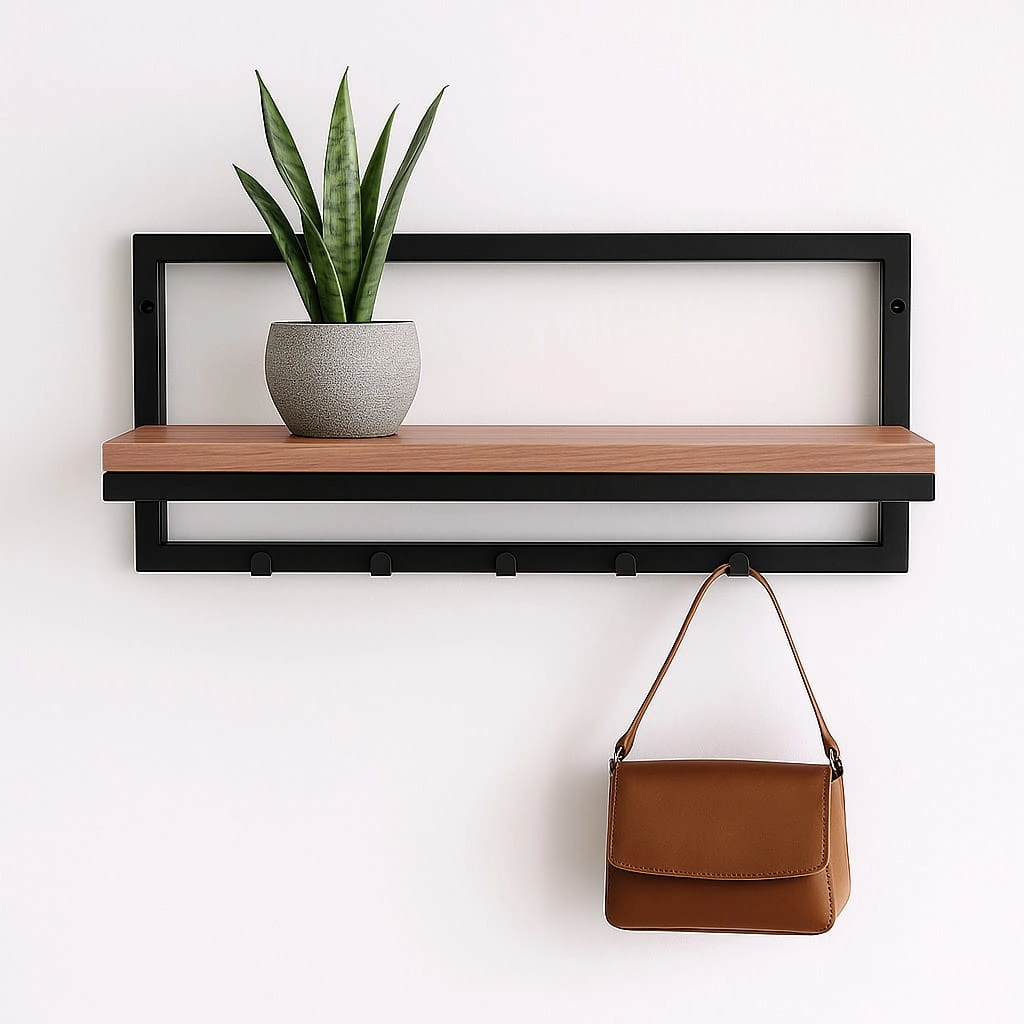 - Praktyczny wieszak ścienny z półką – idealny do przedpokoju, biura lub garderoby