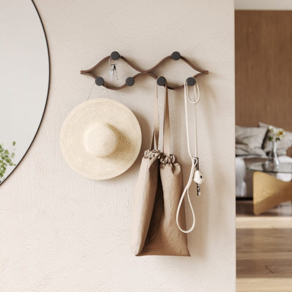 Wieszak ścienny MONTAGE 6 odznacza się nie tylko estetyką, ale też doskonałą funkcjonalnością. Zaprojektowany z precyzją i dbałością o każdy detal, stanowi idealne rozwiązanie dla tych, którzy chcą połączyć nowoczesny styl z ekologicznymi wartościami. Zakrzywiona forma giętego drewna tworzy unikalny efekt 3D, który przyciąga uwagę i ozdabia wnętrze.