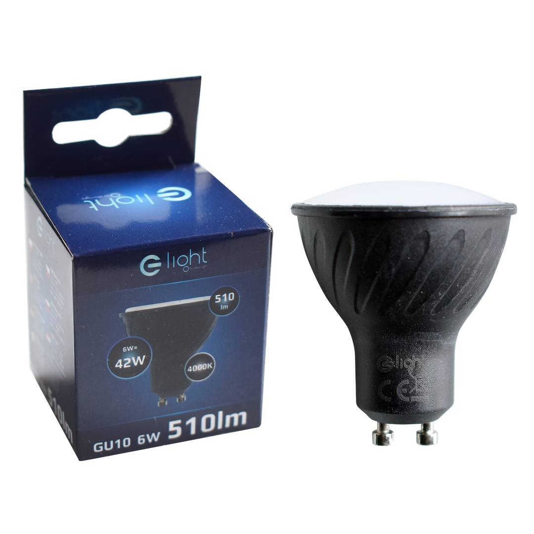 Żarówka Led 6W GU10 4000K barwa naturalna, obudowa kolor czarny