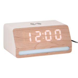 Zegar budzik z wyświetlaczem LED RETRO biały drewniany