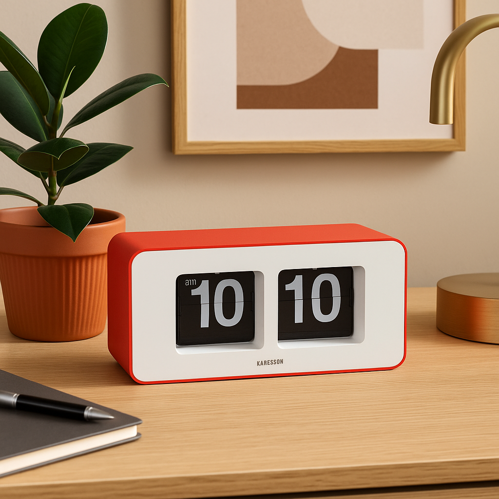 Dzięki niewielkim rozmiarom i wyrazistej formie, FUNKY FLIP odnajdzie się zarówno jako zegar stołowy do biura, jak i zegar ścienny do kuchni czy salonu. To także doskonały pomysł na oryginalny prezent dla każdego, kto ceni sobie funkcjonalność połączoną z designerską formą.