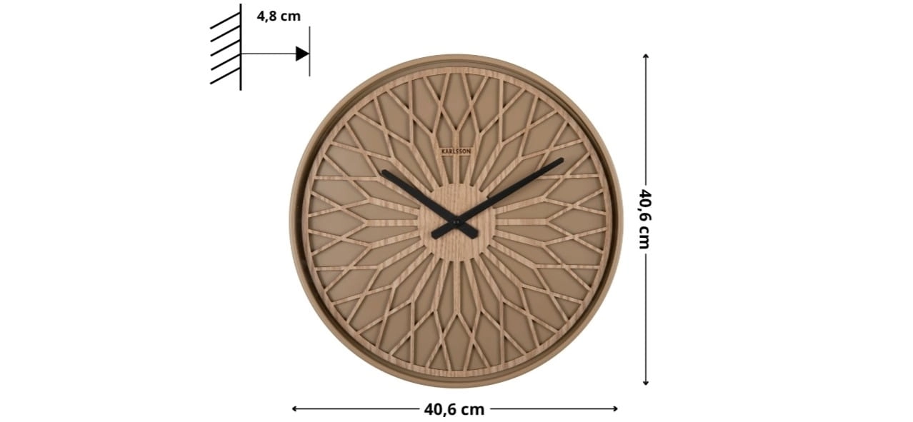 - Średnica 40,6 cm – zyskujesz wyraźny punkt centralny ściany, który wypełnia pustą przestrzeń bez konieczności kupowania dodatkowych obrazów.