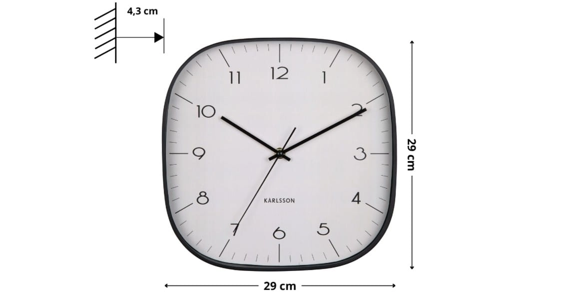 - Zaoblona kwadratowa forma – zyskujesz unikalny design, który przełamuje schematy tradycyjnych okrągłych zegarów, nadając wnętrzu charakteru.
