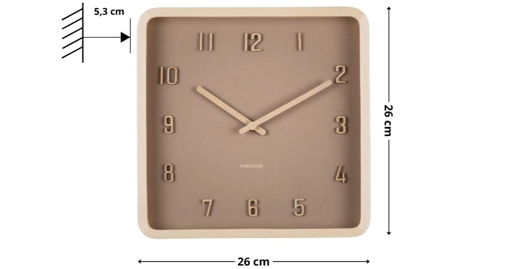 - Kwadratowa, geometryczna forma – zyskujesz unikalny akcent dekoracyjny, który wyróżnia się na tle standardowych, okrągłych zegarów.