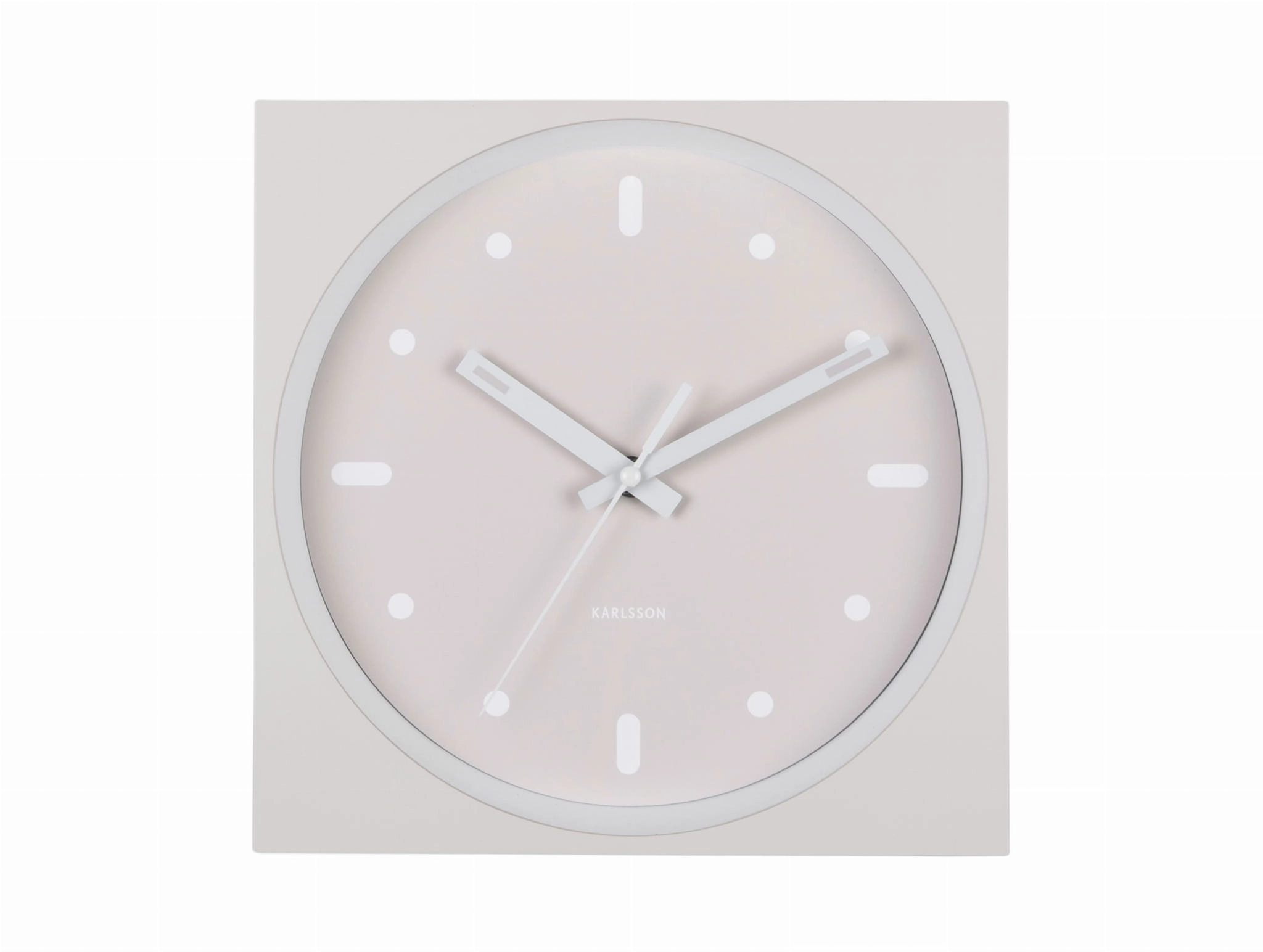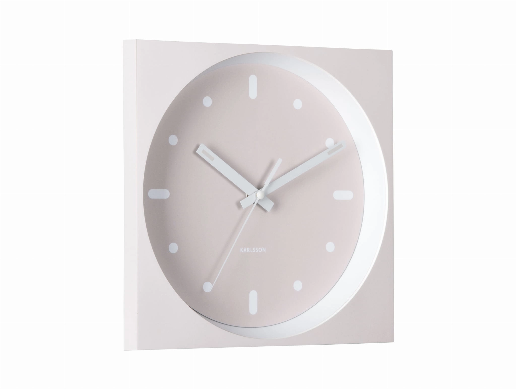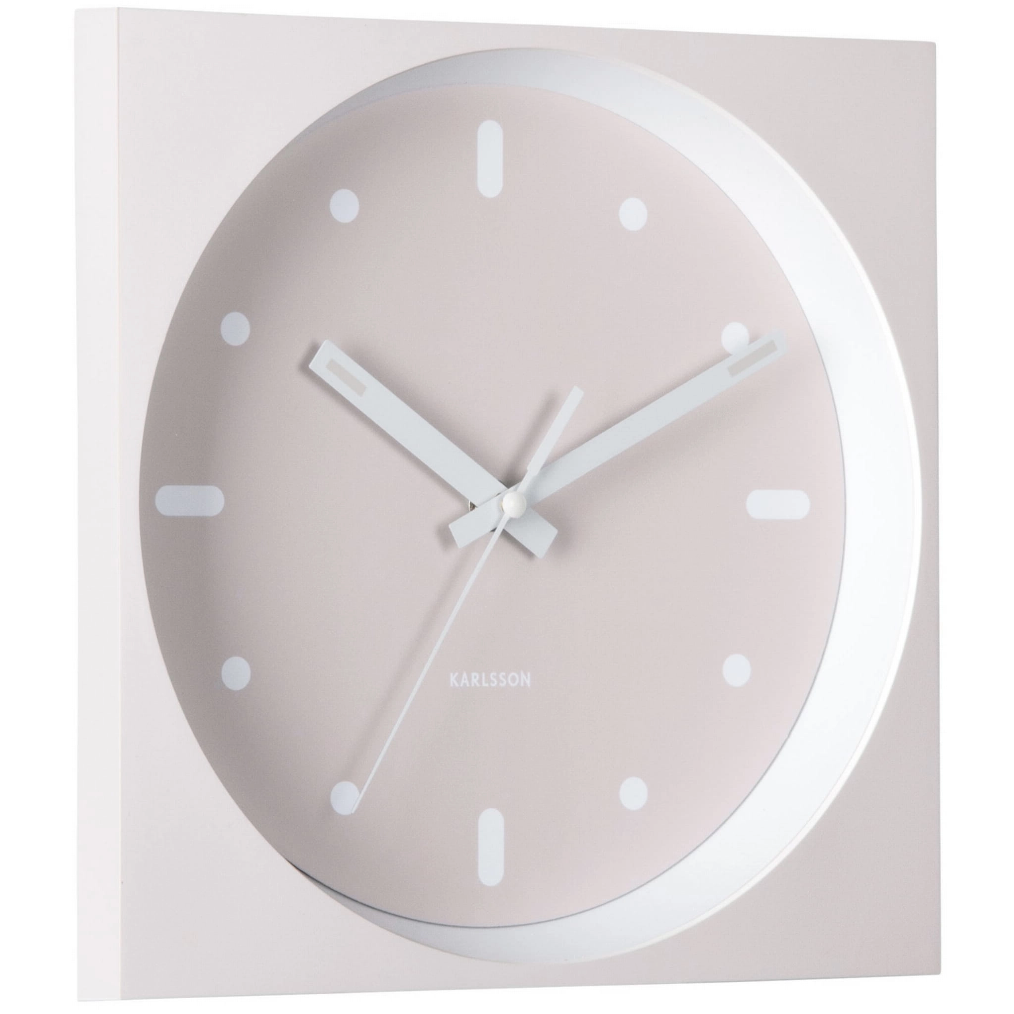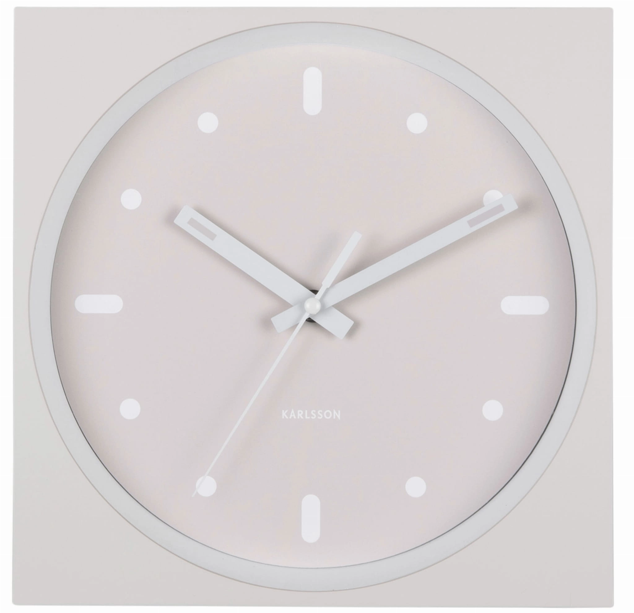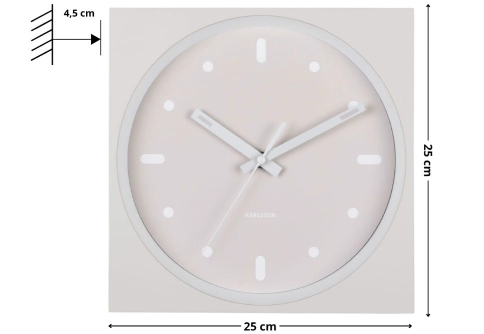 INCESANTE SQUARE to zegar ścienny beżowy, który łączy funkcję odmierzania czasu z dekoracyjną, geometryczną formą. Kwadratowa obudowa i okrągła, wpuszczona tarcza tworzą efekt głębi, dzięki czemu model dobrze wygląda jako nowoczesny zegar ścienny do salonu, kuchni, biura lub przedpokoju.