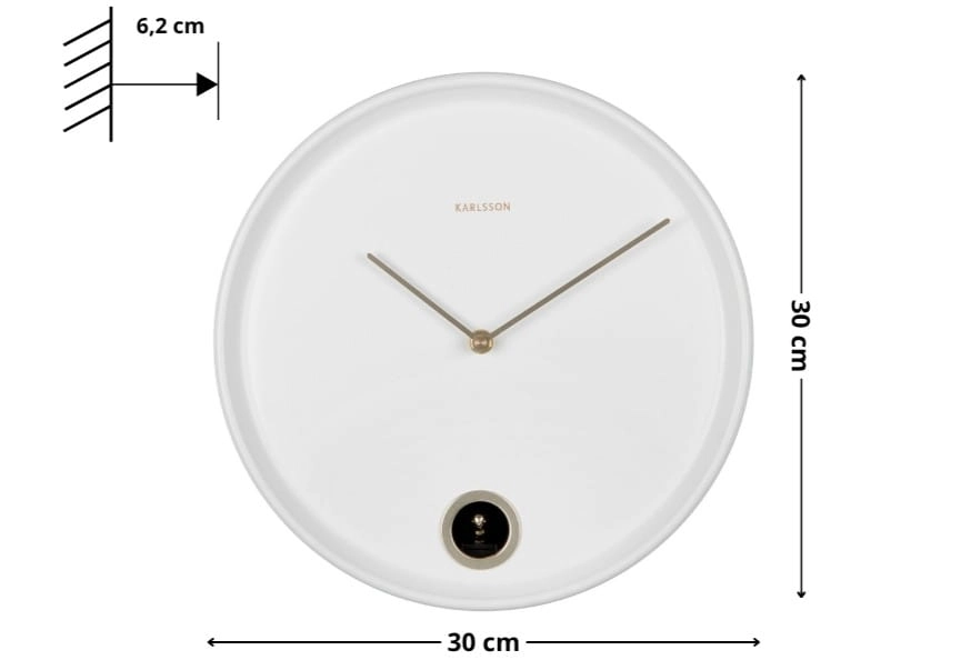 - Średnica 30 cm – zegar jest dobrze widoczny na ścianie, ale nie dominuje nad meblami i dodatkami.