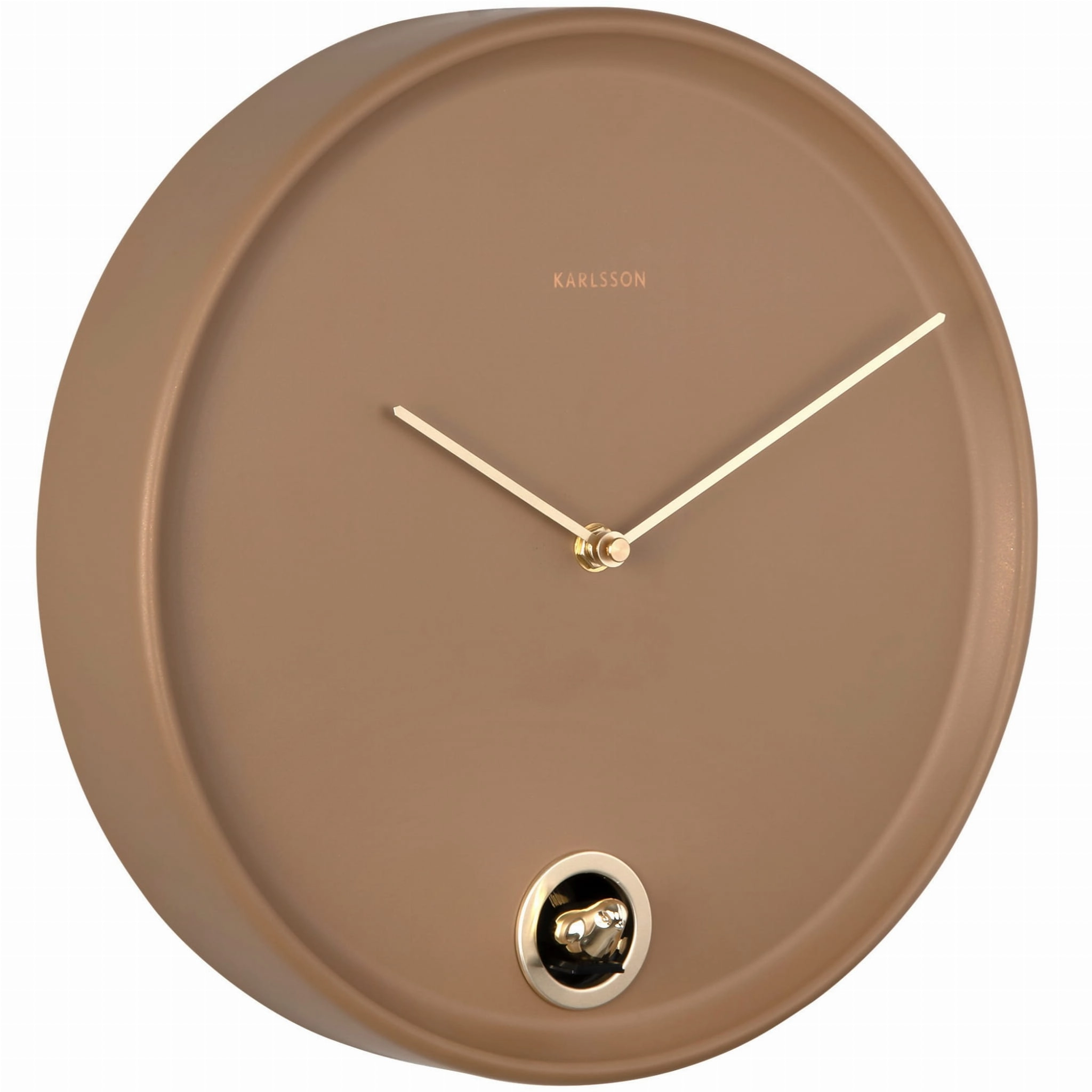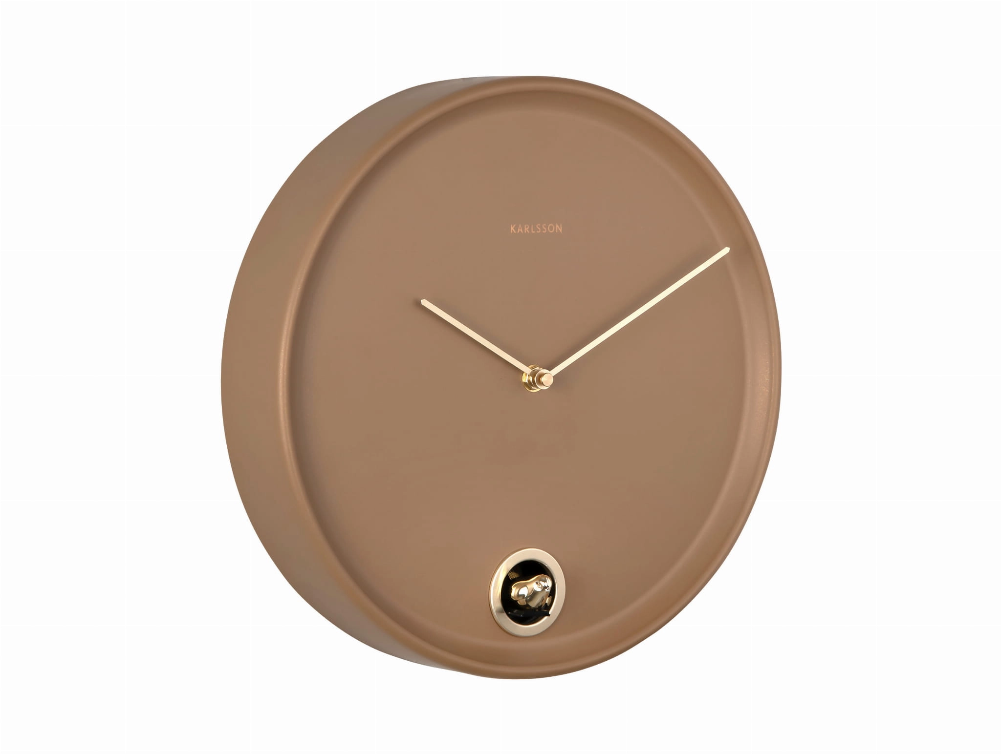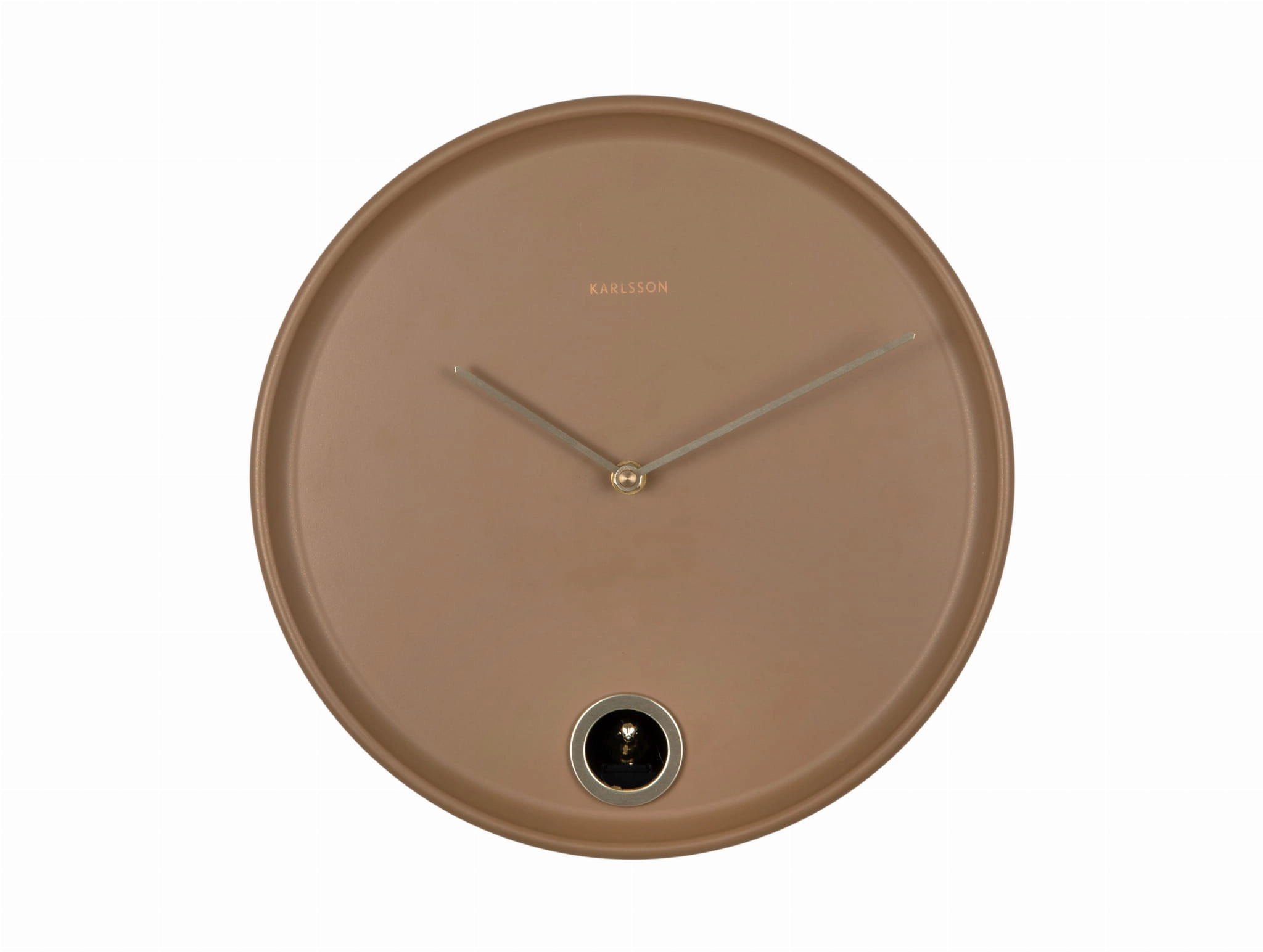 ESENCIA CUCKOO to zegar ścienny z kukułką, który łączy prostą okrągłą formę, brązowy metalowy korpus i delikatne złote detale. Dobrze sprawdzi się jako nowoczesny zegar ścienny do salonu, kuchni, jadalni lub gabinetu, szczególnie tam, gdzie wnętrze potrzebuje cieplejszego, bardziej przytulnego akcentu.