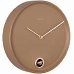 Ten brązowy zegar na ścianę wprowadza do aranżacji spokojny, naturalny charakter. Minimalistyczna tarcza bez cyfr, smukłe wskazówki oraz funkcja wychodzącego ptaszka tworzą dekorację ścienną z funkcją czasu, która nie tylko odmierza godziny, ale też dodaje wnętrzu bardziej domowego rytmu.