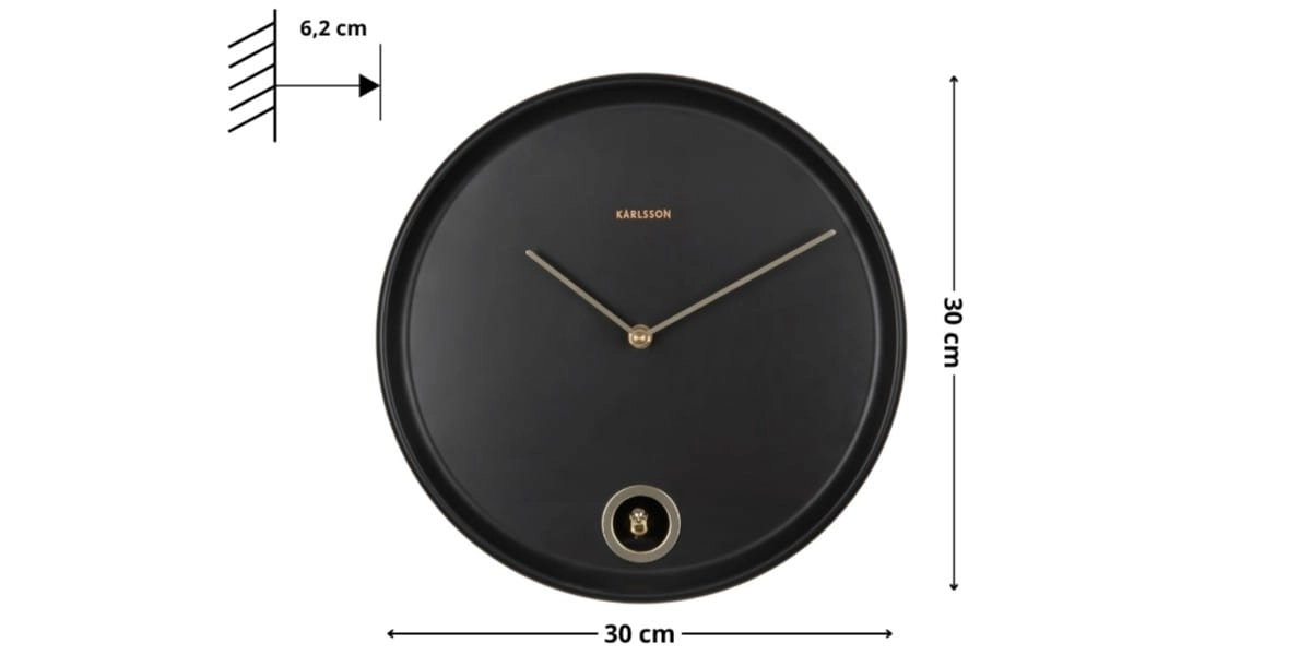 - Średnica 30 cm – zegar jest dobrze widoczny na ścianie, ale nie dominuje nad meblami i dodatkami.