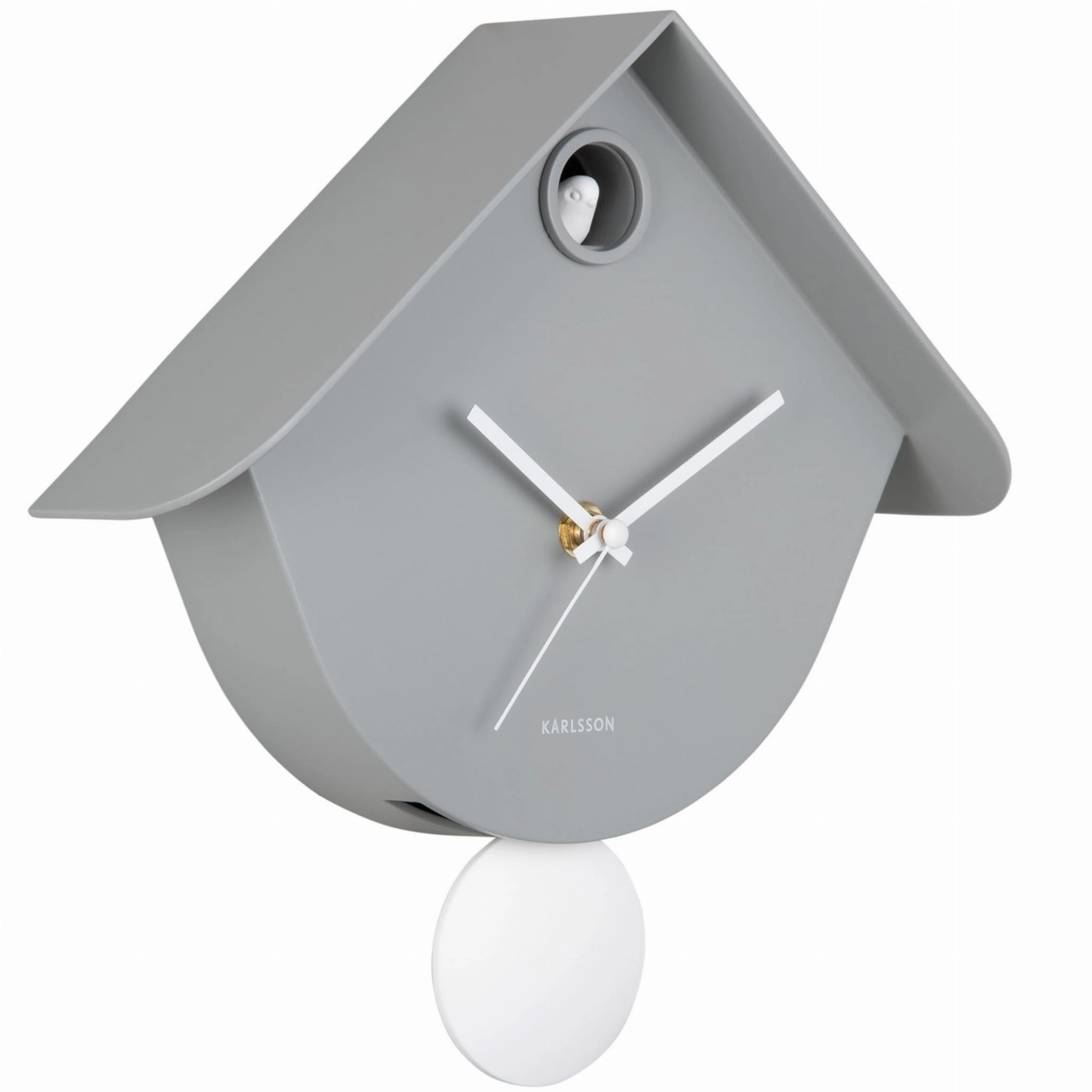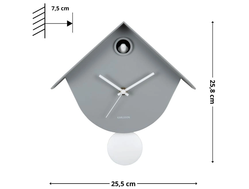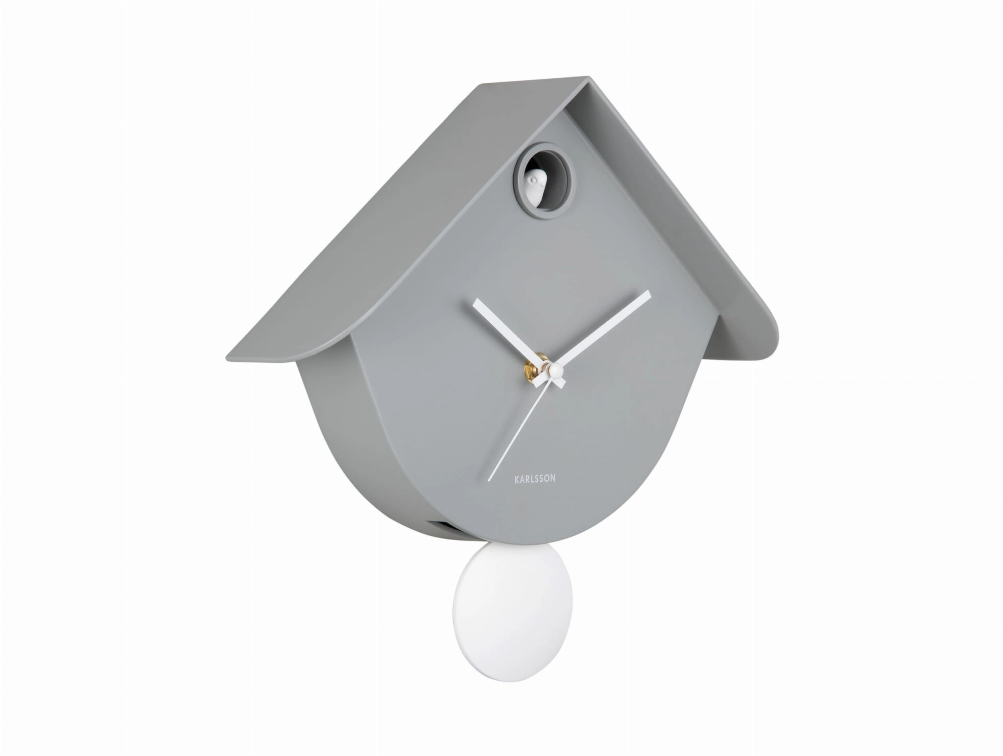 COOL RETRO CUCKOO to zegar ścienny retro, który łączy klasyczną inspirację zegarem z kukułką z prostą, współczesną formą. Szary kolor, białe wskazówki i charakterystyczny kształt domku sprawiają, że model dobrze odnajduje się jako dekoracyjny zegar do wnętrza, bez przytłaczania aranżacji.