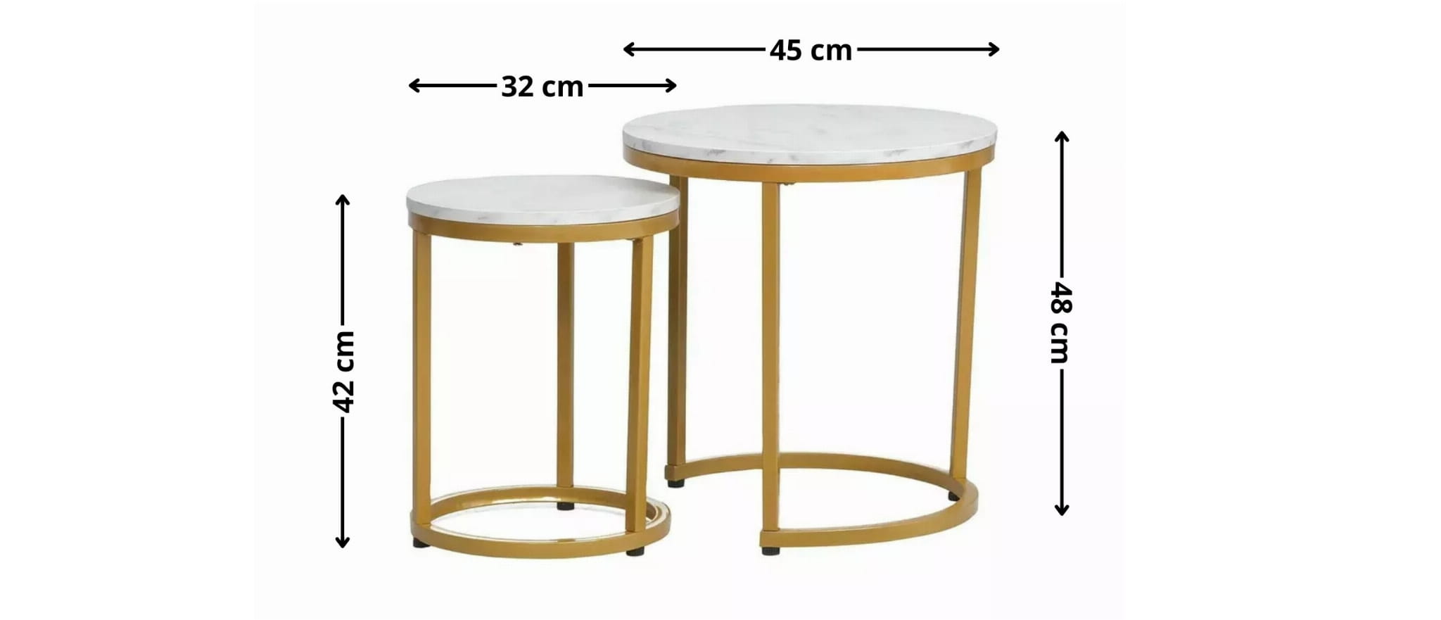 - Wymiary mniejszego stolika: średnica - 32, wysokość - 42cm