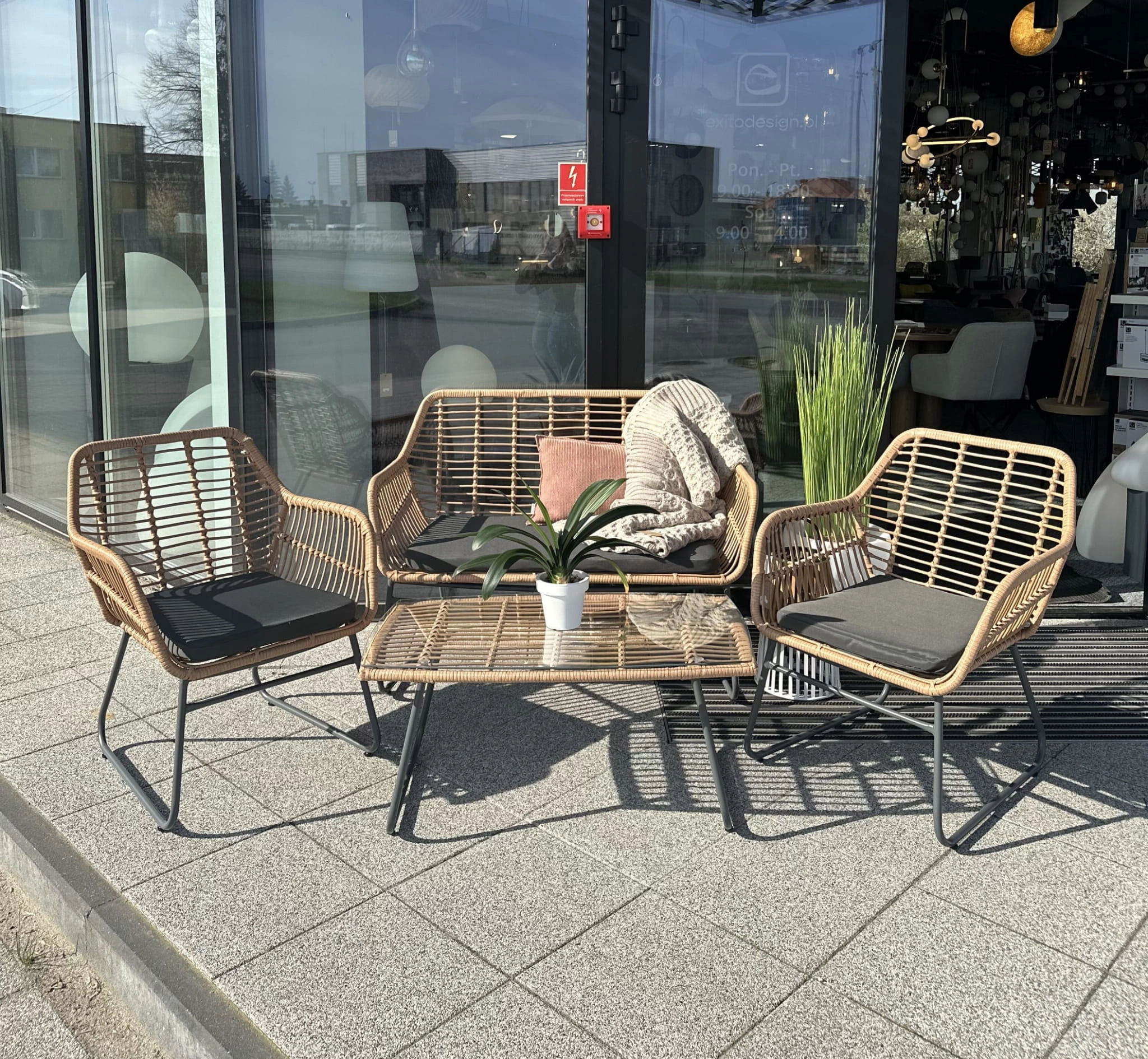 - Trwała plecionka z technorattanu – odporna na warunki atmosferyczne