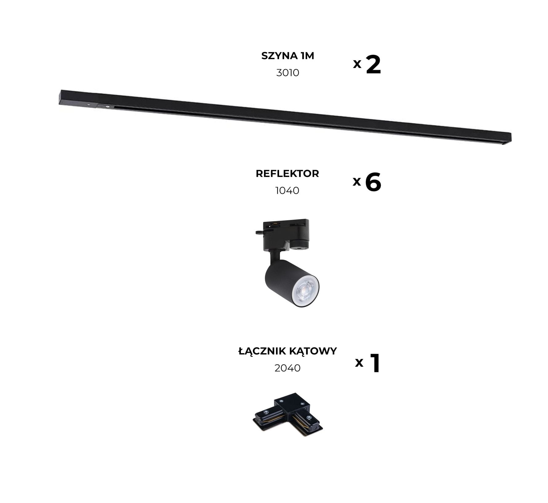 ✨ Zestaw szynowy 1-fazowy L czarny 2x1 m 6xGU10