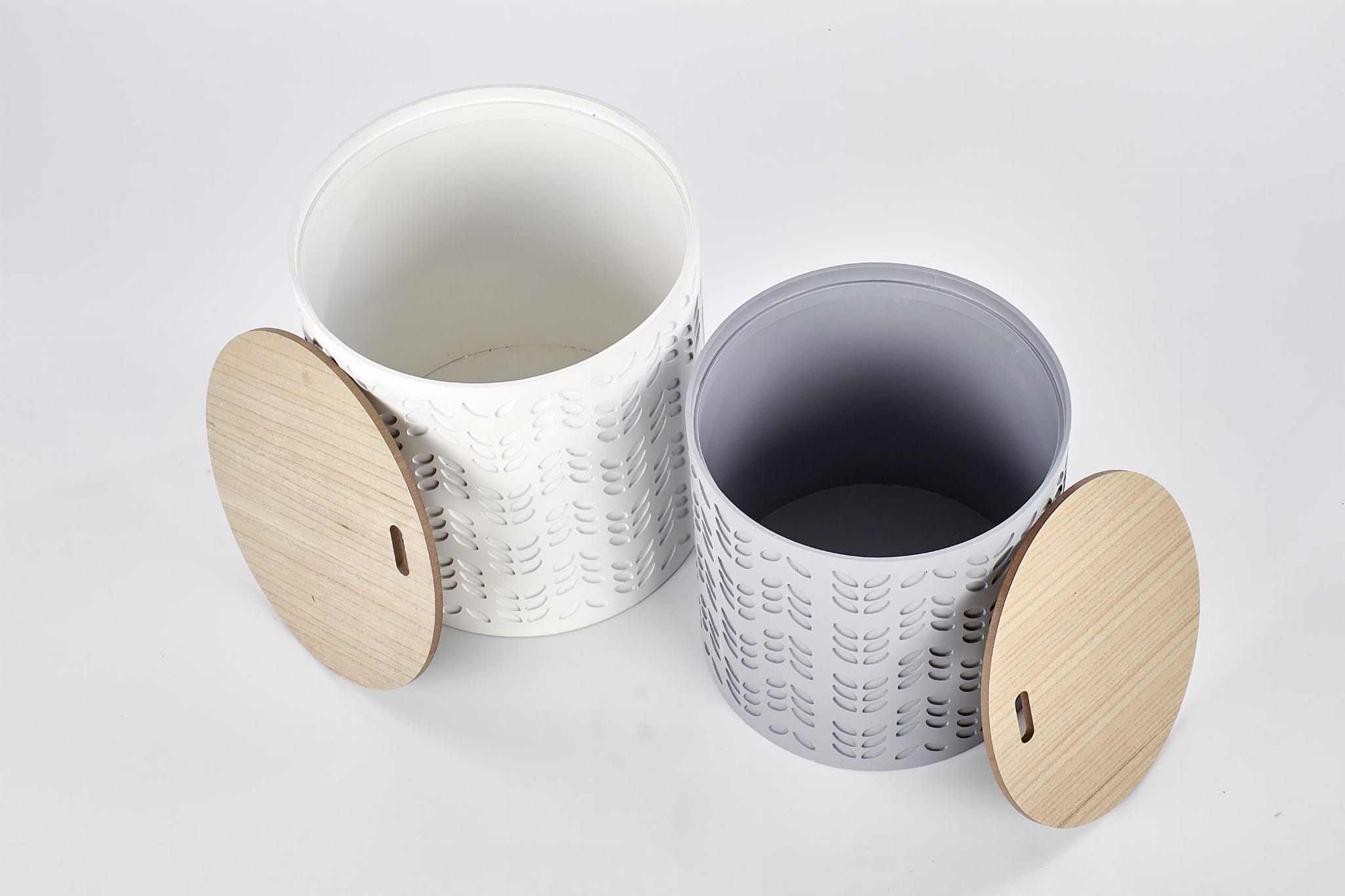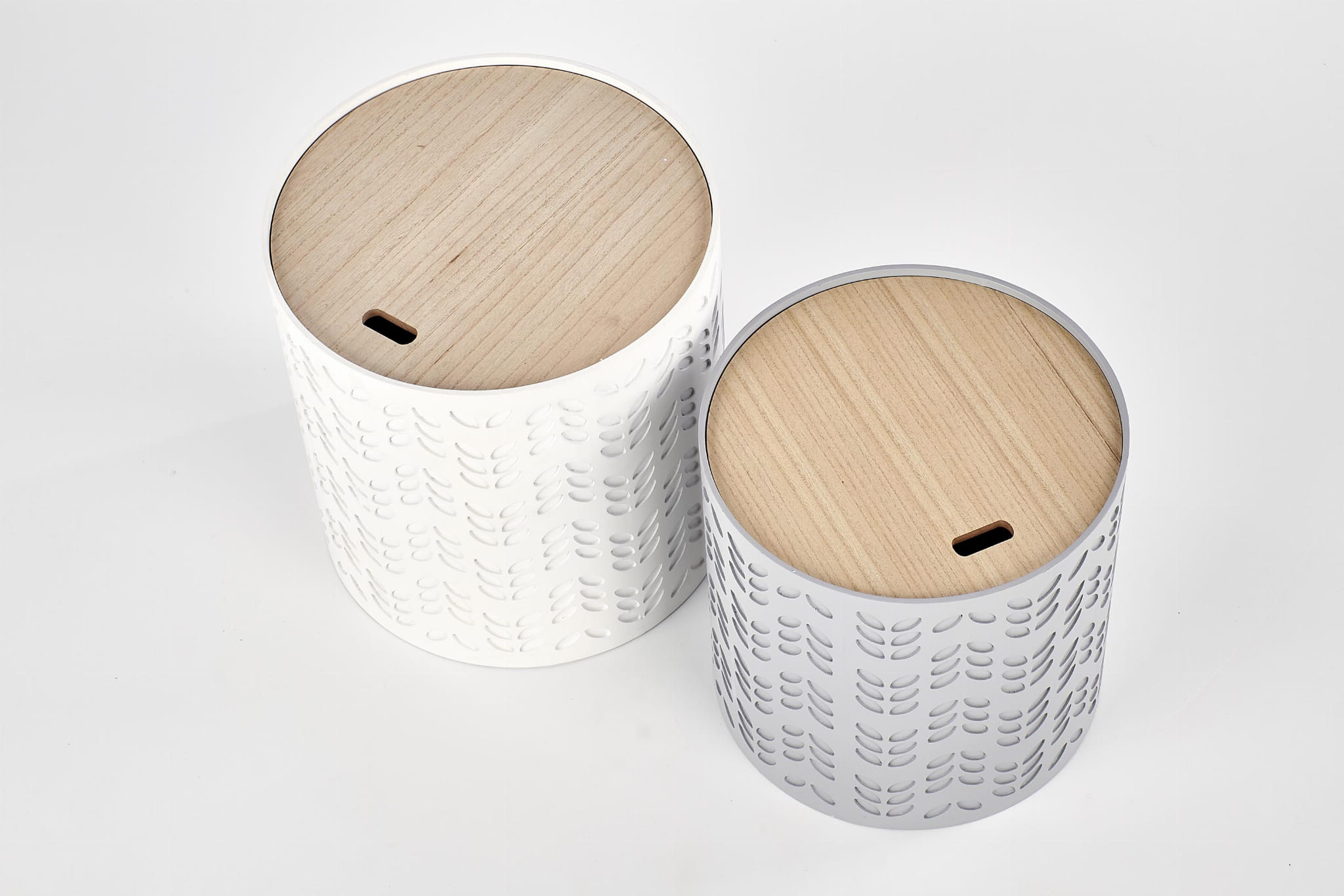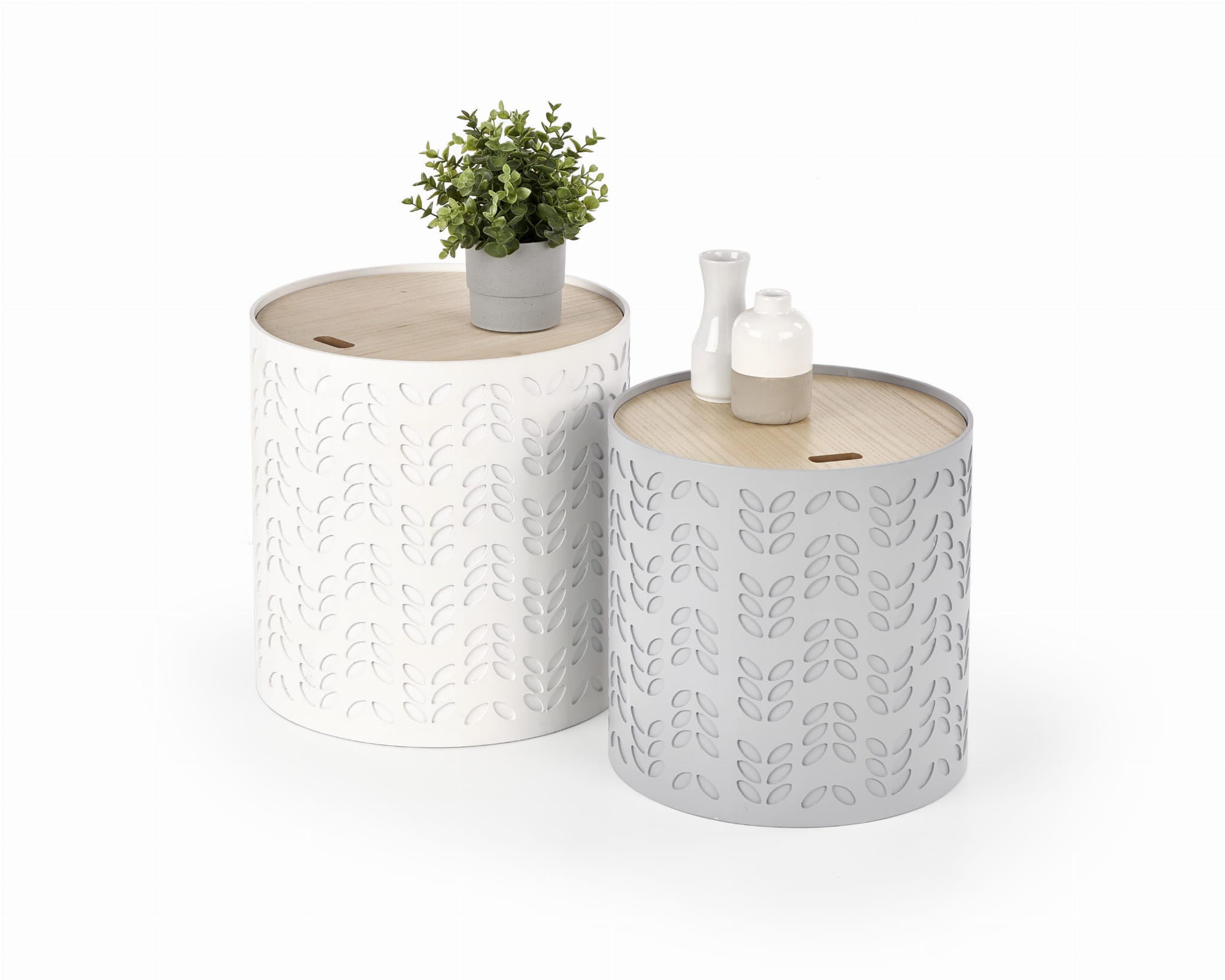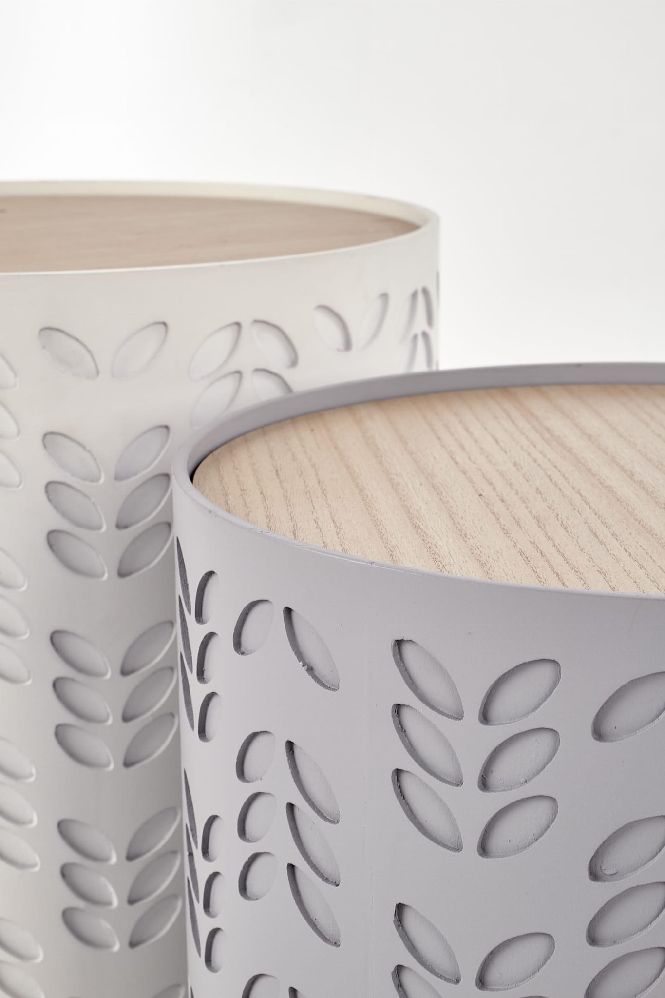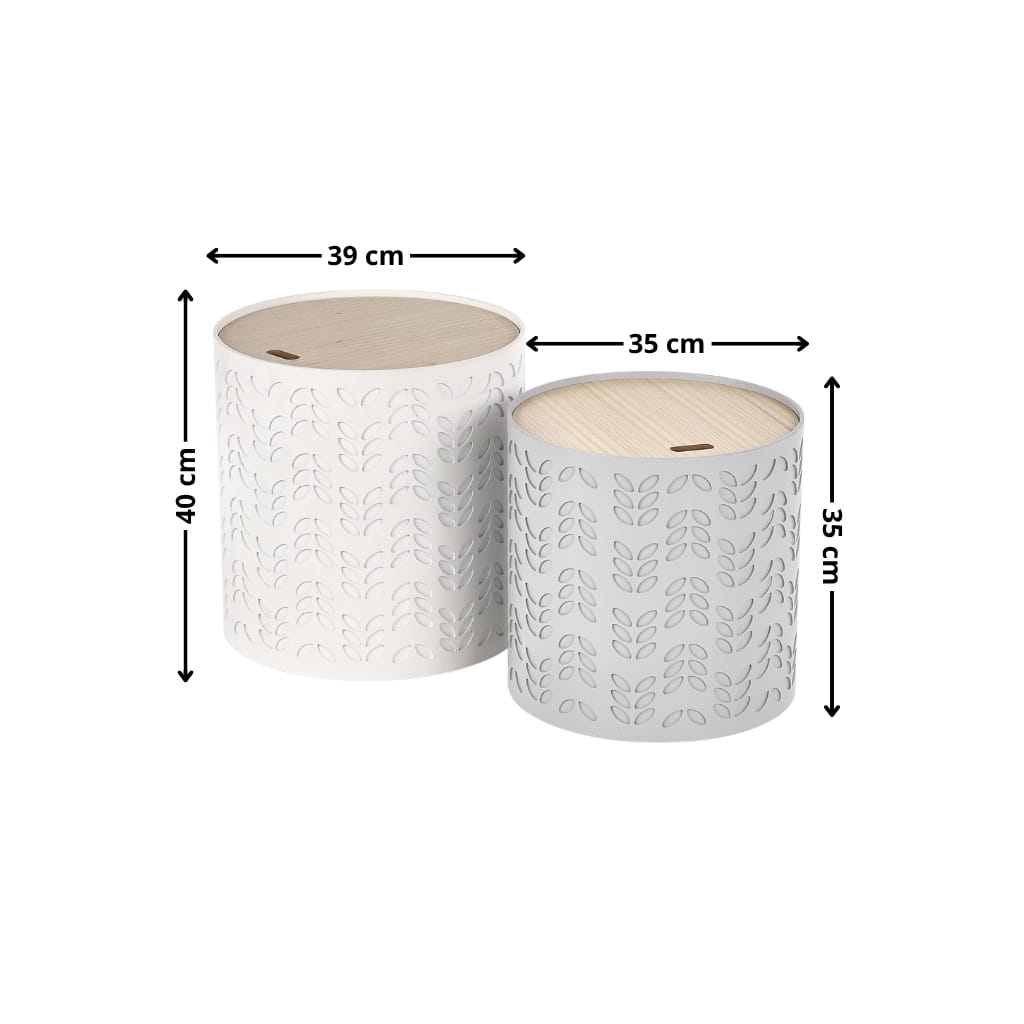 Zestaw dwóch stolików kawowych do salonu świetnie odnajdzie się w roli stolików pomocniczych, stolików bocznych przy sofie lub centralnego miejsca w strefie wypoczynkowej. Okrągłe stoliki kawowe białe i popielate będą pasować do wnętrz urządzonych w stylu minimalistycznym, japandi czy skandynawskim.