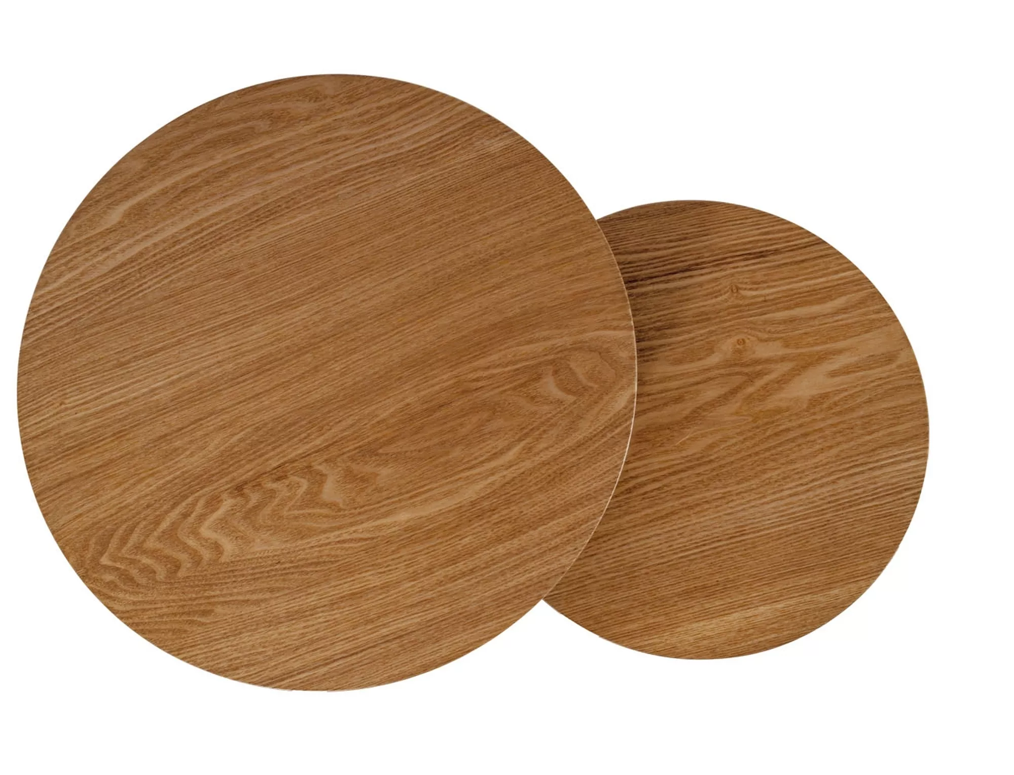 Ten model porządkuje przestrzeń w prosty sposób. Masz do dyspozycji okrągłe stoliki kawowe o dwóch wysokościach, więc łatwiej rozdzielasz funkcje w codziennym użytkowaniu. Jeden może pracować przy sofie i służyć na kawę, drugi może stać bliżej fotela lub zostać częściowo wsunięty pod większy blat, gdy chcesz odzyskać miejsce. To praktyczne rozwiązanie do kącika wypoczynkowego, mieszkania w bloku, apartamentu i wnętrz, w których liczy się każdy metr.