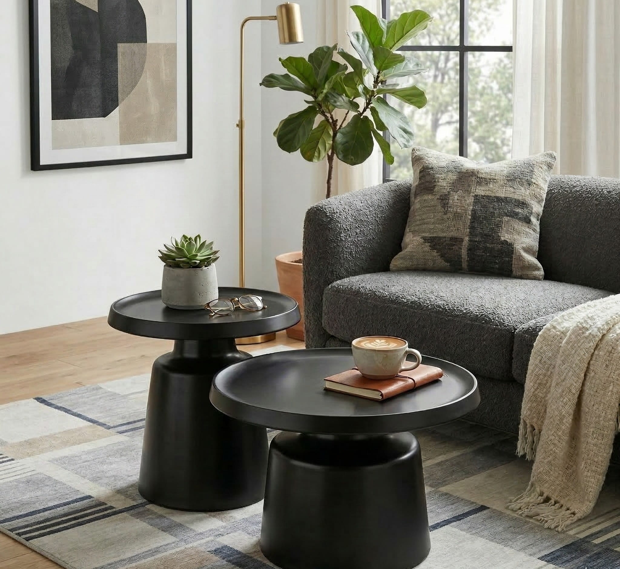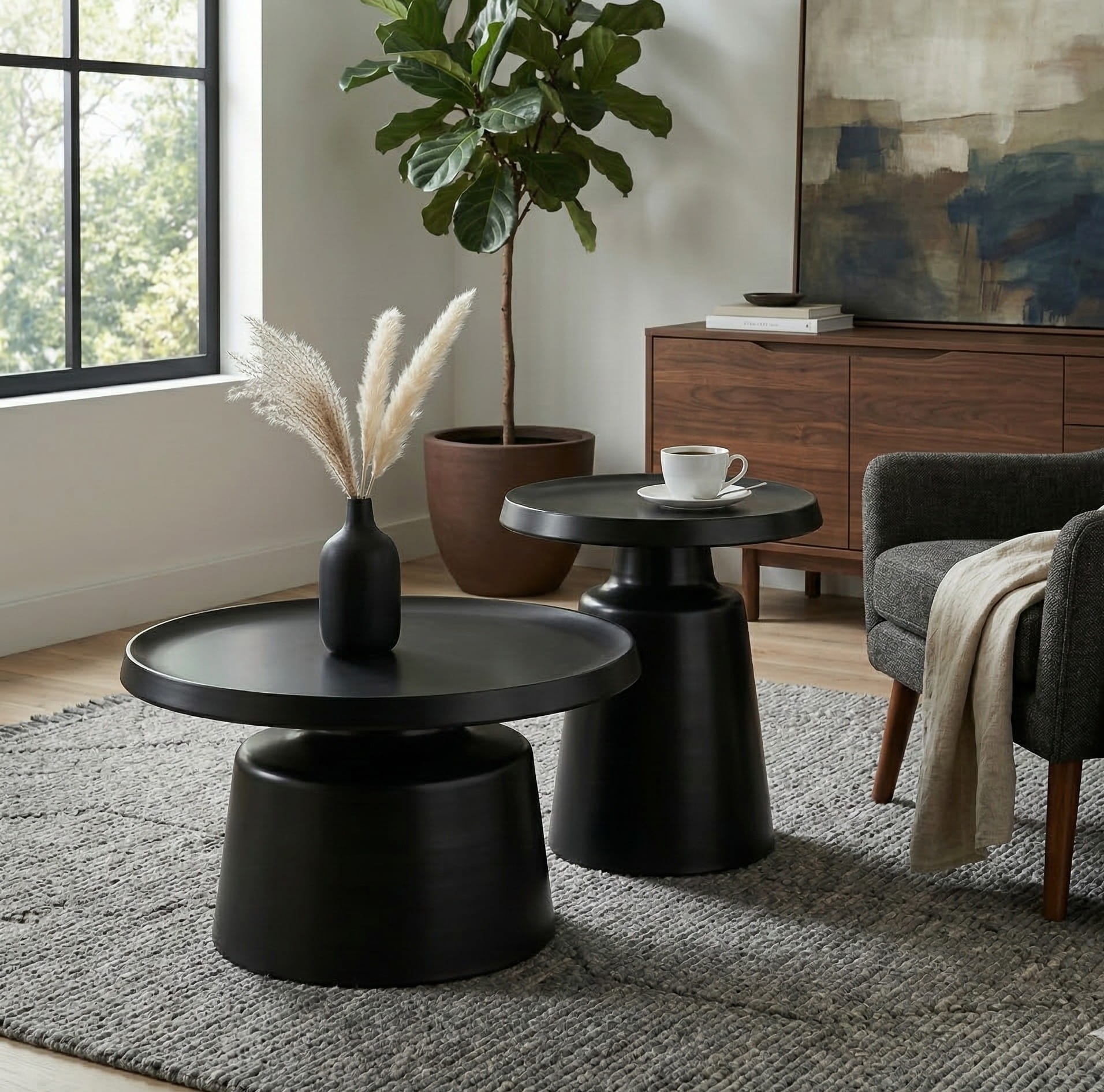 ✨ Czarne okrągłe stoliki kawowe do nowoczesnych i loftowych wnętrz